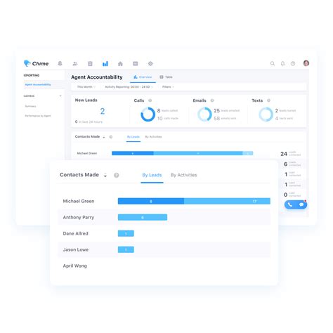 The Chime CRM dashboard provides users with a comprehensive overview of their customer interactions and sales pipeline. From the dashboard, users can view a list of their recent activities, upcoming appointments, and open opportunities. Users can also access a variety of reports and analytics to track their progress and identify areas for improvement.