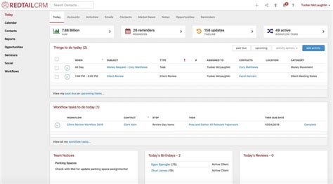 - Customizable dashboard: Advisors can customize their Redtail CRM dashboard to include the information that is most important to them. This can help advisors to stay organized and focused on their top priorities.
